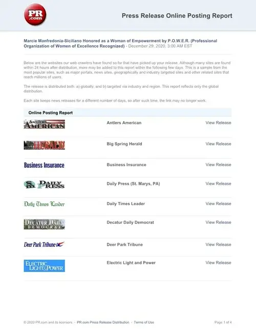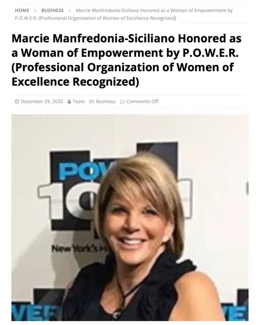 Marcie Manfredonia Honored as a Woman of Empowerment by P.O.W.E.R. (Professional Organization of Women of Excellence Recognized)